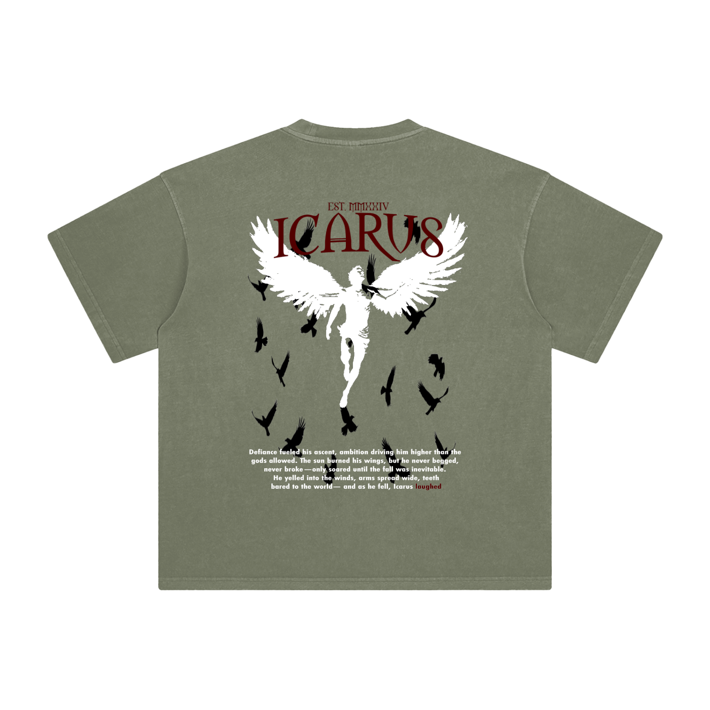 Ambition with burn marks. Fallen wings, circling crows, and a warning in red: laugh louder, fly higher.